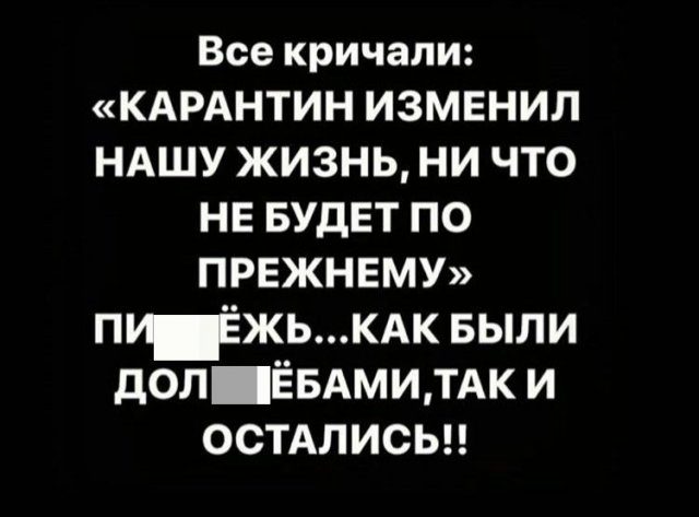 карантин НЕ изменил нашу жизнь… как большинство долбодятлов голосовали за упырей, так и снова, на те — же грабли!!!