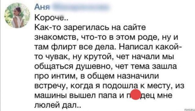 Еще бы папа не дал люлей. Мчался потрaхаться, а там дочь :)