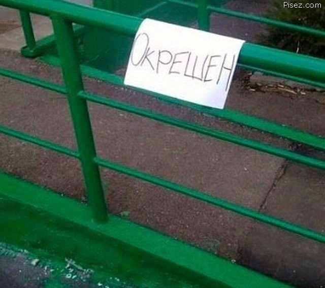 По забору что не понятно? Он «Окрещен» — то бишь крещенный.