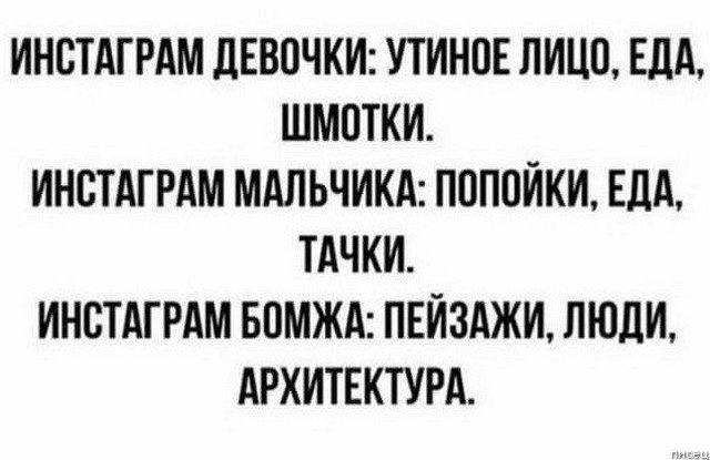 Всё в точечку! Но вот мне не даёт покоя вопрос: Откуда у бомжа инстаграм?))))