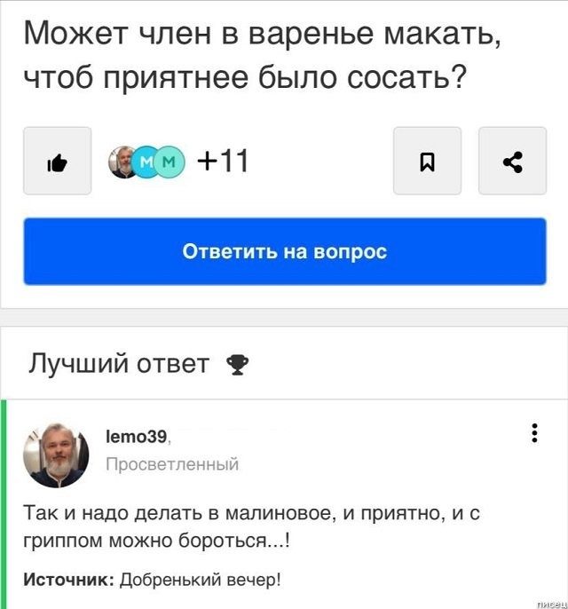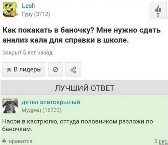 Есть такой шедевральный интернет-сервис «Ответы Mail.ru — поиск ответов на любой вопрос», где пользователи задают различные вопросы и получают на них ответы от других пользователей. И вот, что из этого получается…