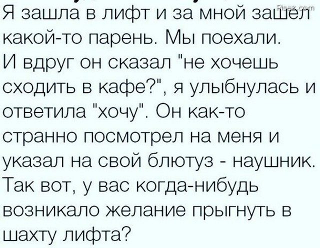 В московской организации 'Зеркала' в их 3 или 4-этажном офисе лестница прозрачная, посреди залов, а лифта нет. Чтоб купить зеркало, — надо подняться на верхний этаж в кассу. Под лестницей на 1м этаже рояль стоит и дядька в вечернем костюме играет, томно закатывая глазки на чулки и стринги на филейных частях покупательниц, видных ему снизу под юбками…