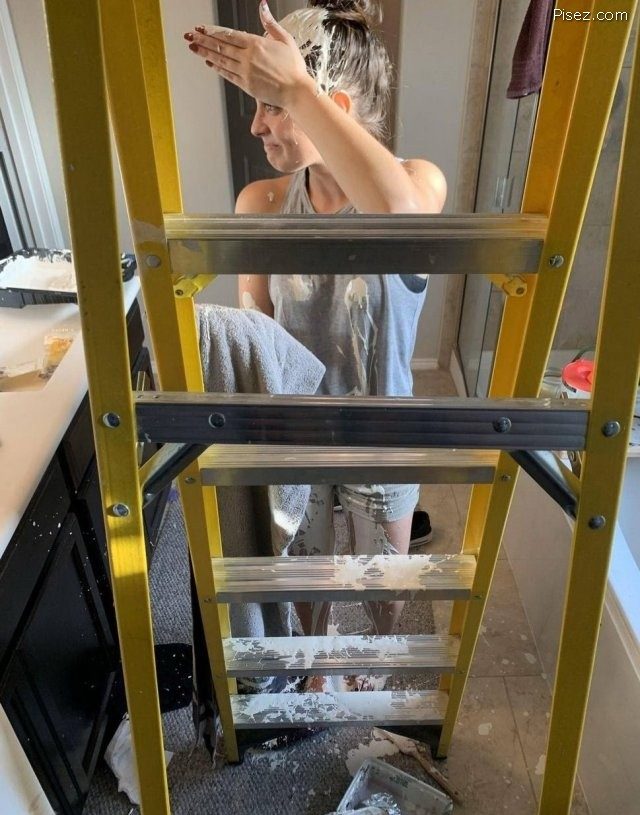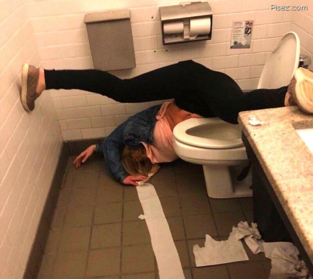 Девушка с первой фотки в падении, похоже, за бумагу цеплялась