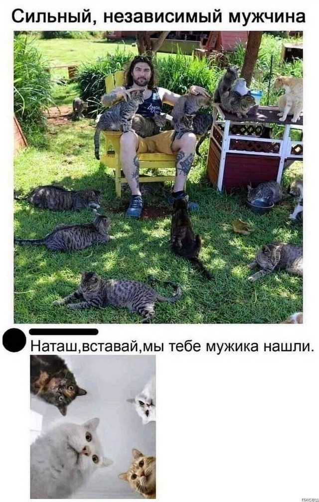 • Сильный независимый мужчина. Коты: «Наташ, вставай, мы тебе мужика нашли». )))