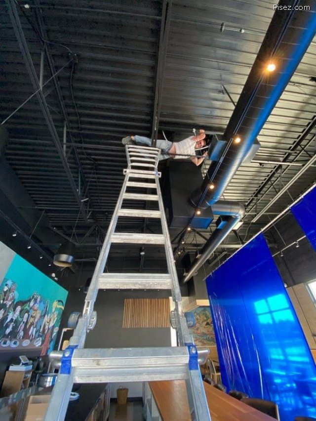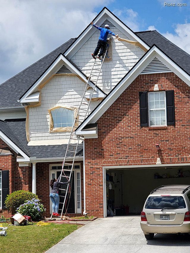 Мне нравиться парочка с длинной лестницей, возле дома. Она типа держит его, правда стоит на самой лестнице. Удачи им обоим…