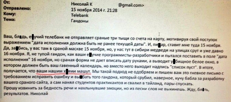 Письмо сибиряка в московскую техподдержку :)