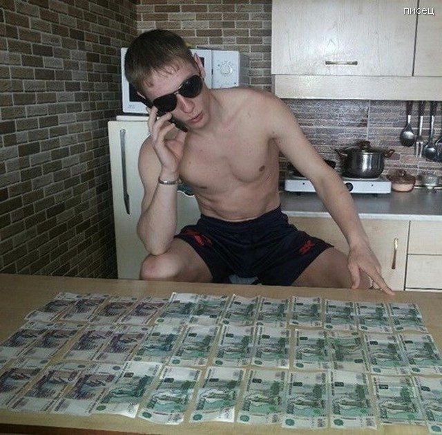 А мне понравился этот в трусишках, разложивший 25 к, как будто это минимум лимон зелени. Просто мечта всех деревенских дурoчек!