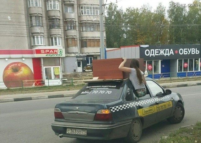 Однажды мы так же бассейн на дачу с рынка везли, — эдакую огромнейшую пластиковую ванну, прямо на крыше машины. Привязать ее было нереально, — руками сквозь открытые окна держали… Ну это капец, конечно, была дорога! А чО поделать? Везти надо, а иной способ недоступен.