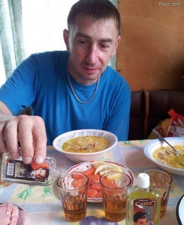 Как на фото одеколон не нальешь, его нужно было вытряхивать из флакона. Да и по цвету в стаканах не «Саша», а скорее всего самогон.