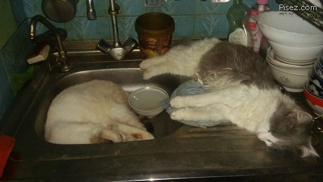 На предпоследней — такое впечатление, что котов кинули в мойку для разморозки перед готовкой!