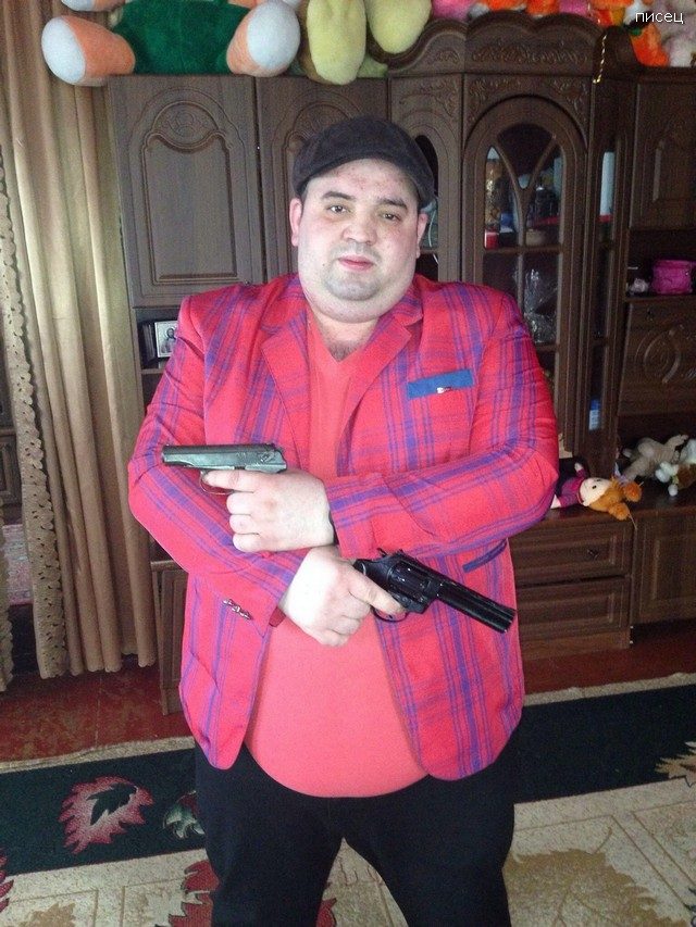 Интересная наверное была история: чел сначала стоит выпивший с обрезом, а потом, на фоне этого же ковра, в бандаже и с поломанными руками.