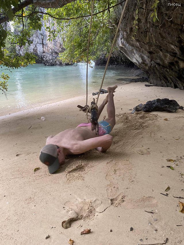 Мужик, свалившийся с качелей, солидную кучу наложил