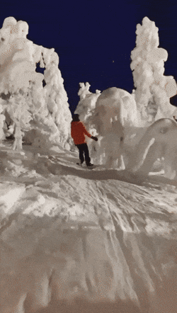 Хорошая гифка, где лыжник едет через заснеженный лес ..!