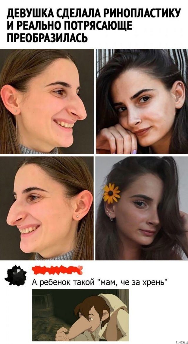 Та девка, с первых картинок, что сделала операцию по улучшению носа — явно поторопилась, а могла бы сначала прекрасно сыграть эпохальную роль бабы Яги в каком-нибудь детском сериале… Прославилась бы на века ....!