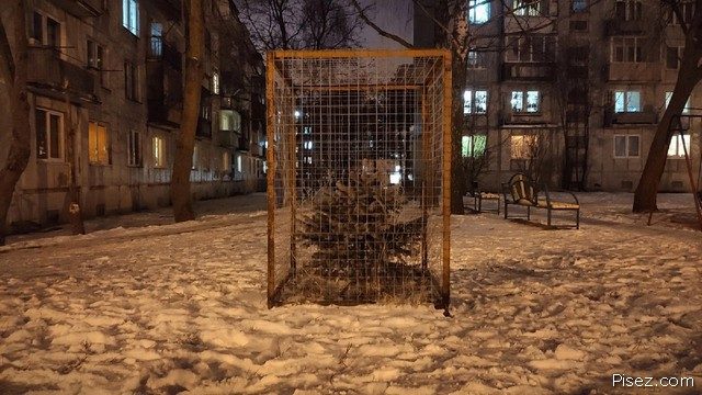 Как ни смешно смотрится, дети в садах именно в таких вольерах и гуляют в непогоду. Тоже бесит, но правила такие: гулять в любую погоду, если ветер менее 15м/с. Мой плачет от холода и гуляет