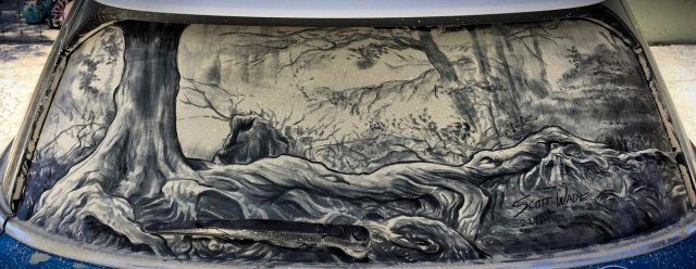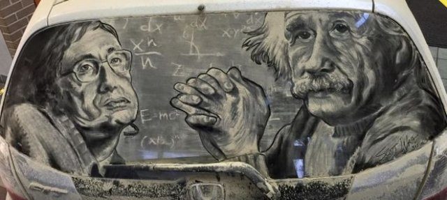 Талантливые люди, порой, действительно могут удивить. Как и автор этих, не побоюсь этого слова, шедевров. Ему для творчества не нужно ничего, кроме кисточек и самой обычной пыли, скопившейся на автомобильных стеклах. Выглядит это действительно интересно и необычно — оцените сами.