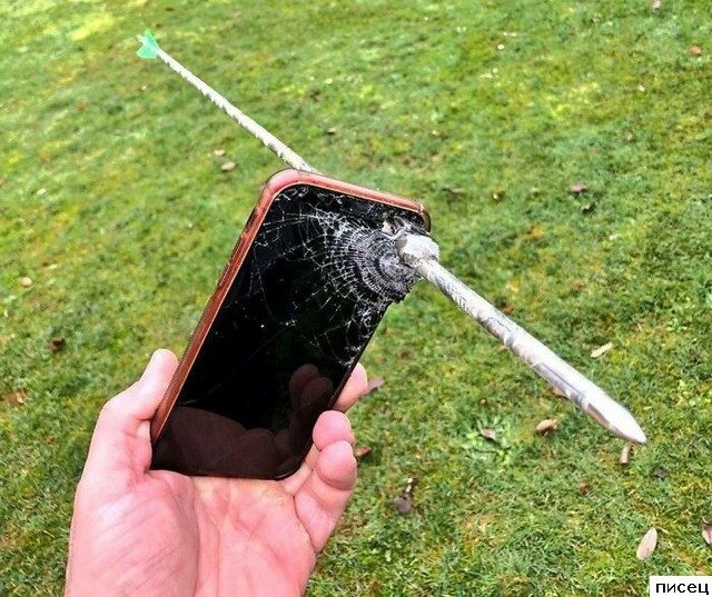 Это стрела из чего же так пронзила смартфон ..!? Из арбалета ..?