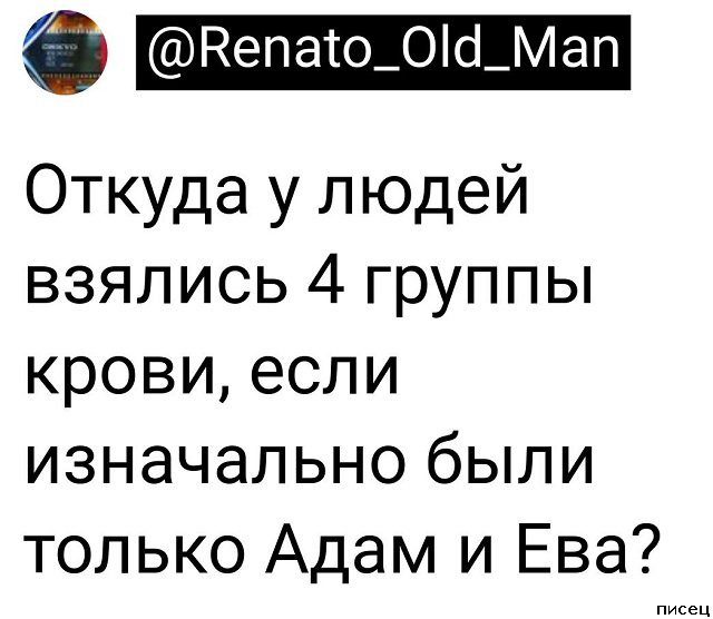 Понравилось всё!+++ Но задумался, откуда у нас четыре группы крови?))