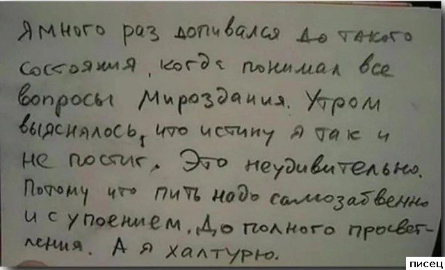 Последнее — вопрос не алкоголизма, а философии