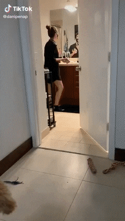 Дорогие женщины! Если для собаки увидеть вас в вечернем туалете такой шок, то какой ежедневный стресс, для нас мужчин, видеть вас каждый день во всей ,, красе,,!?))))