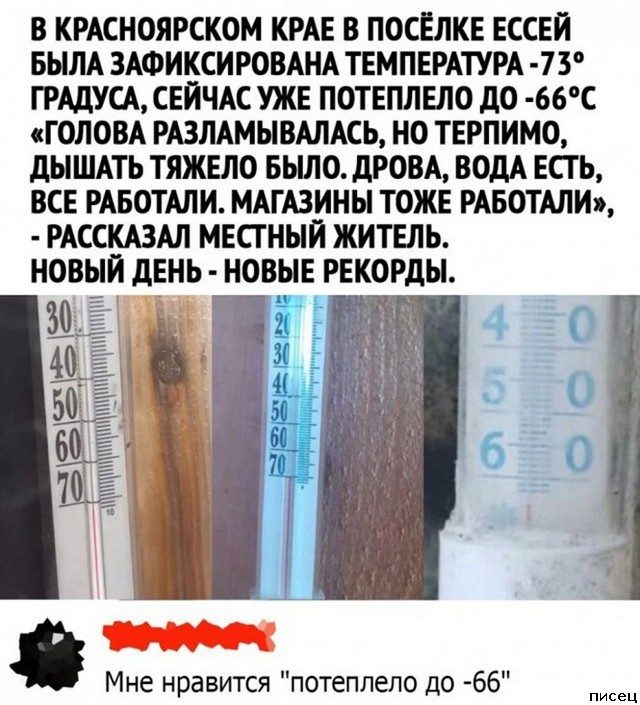 Как говорят синоптики: после -73, воздух прогрелся до -66