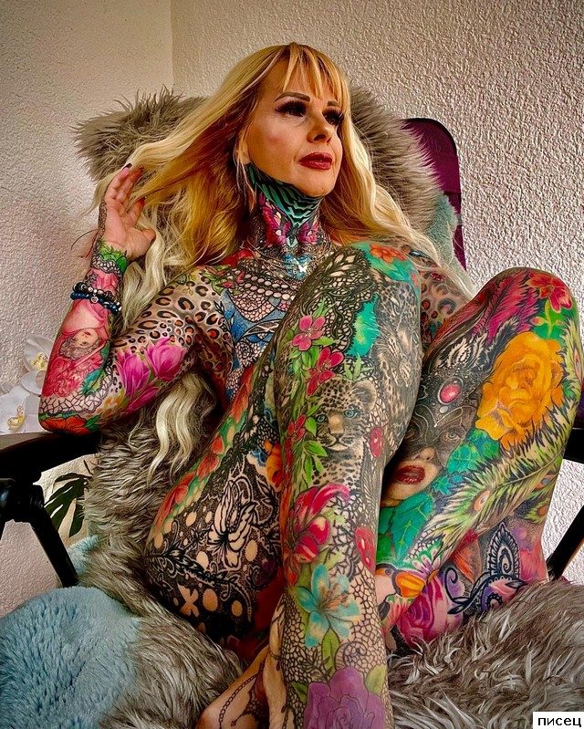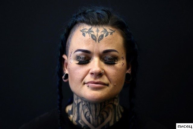 очень, на мой взгляд, уродливо, на женщин эти существа не похожи, быть может это компьтерный рисунок??? казалось бы, головы у этих существ есть, как можно себя так возненавидеть и так обезобразить??!!! а во что они превратятся через 5-10 лет?? Господи, спаси и сохрани!!! ужас… итог — нет мозгов- сделаешь тебе татуировку на морде и будешь пугать детей и взрослых!