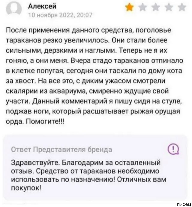 Все прикольные отзывы Писца