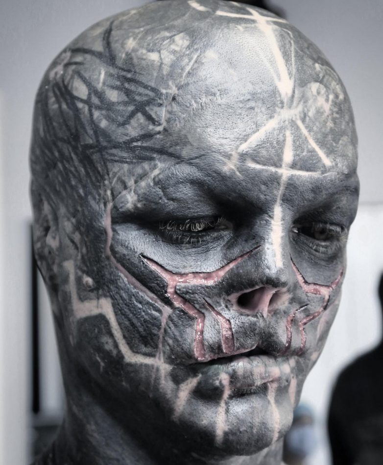 Известно, что объявивший себя «черным пришельцем» мужчина в том числе закрасил чернилами белки глаз, сделал шрамирование, ампутировал часть носа и языка, а также избавился от ушей. При этом на размещенном кадре 35-летний блогер продемонстрировал свою внешность десятилетней давности.