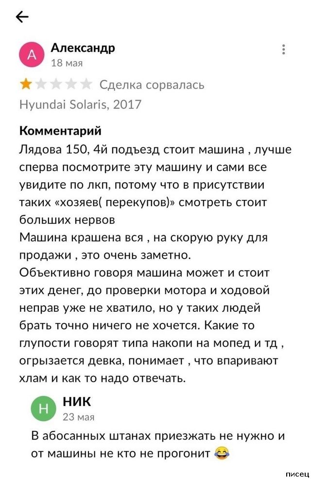 Все прикольные отзывы Писца