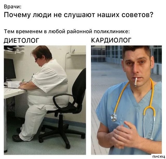Диетолог с кардиологом — Очень точно подмечено. А вот к КАКОМУ врачу относится трактор с прицепом из легковушки ??? Мля, Интрига!