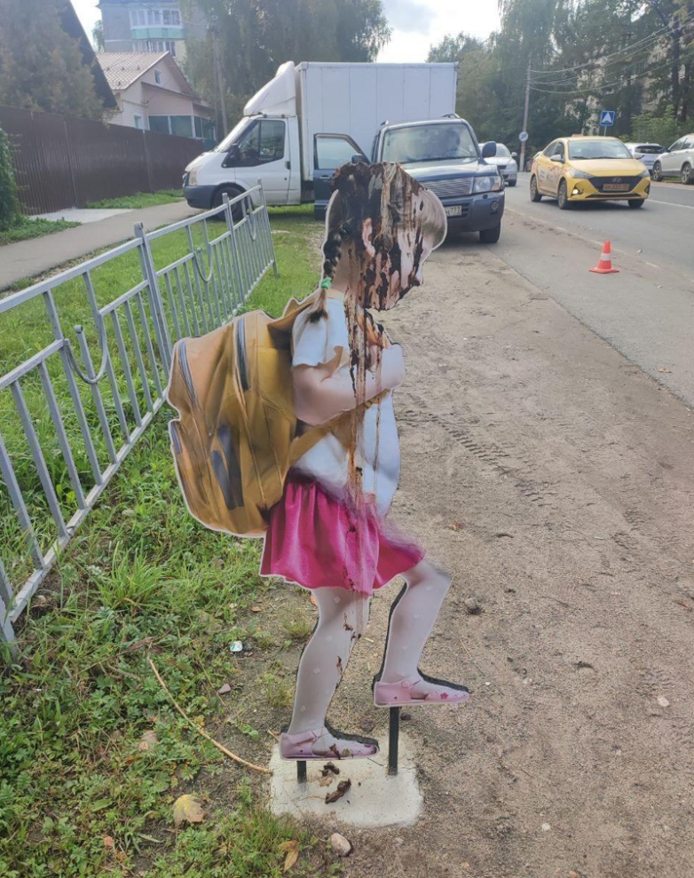 Также пострадал картонный макет девочки, призывающий водителей снижать скорость.
