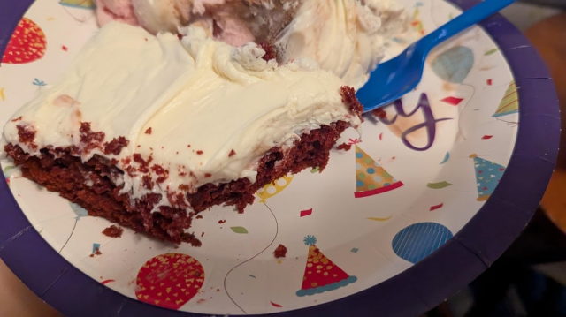 На праздничной тарелке изображён шарик на ниточке, которая очень похожа на некомфортный волос