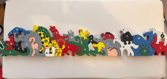 Детский пазл, состоящий из животных, чьё название начинается на определённую букву английского алфавита