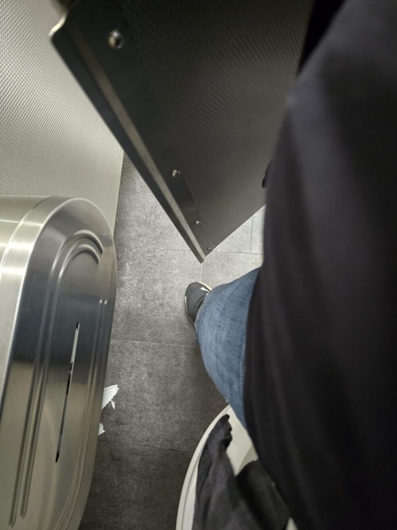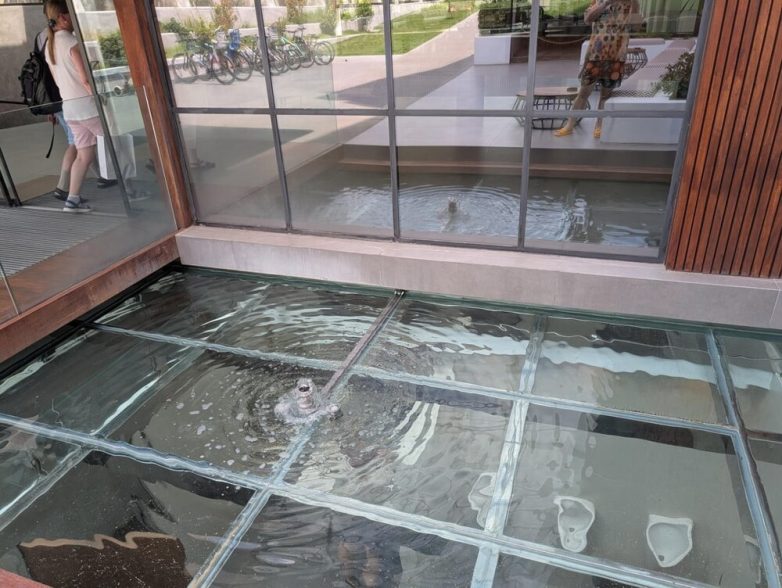 3. Стеклянный потолок в мужском туалете отеля