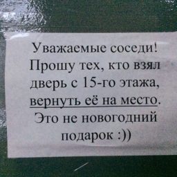 Всем нам периодически надо обсуждать с соседями различные жилищные вопросы как посредством личного общения, так и через занимательные объявления, некоторые из которых и представлены вашему вниманию. Посмотрите, вдруг что «возьмёте на вооружение»!